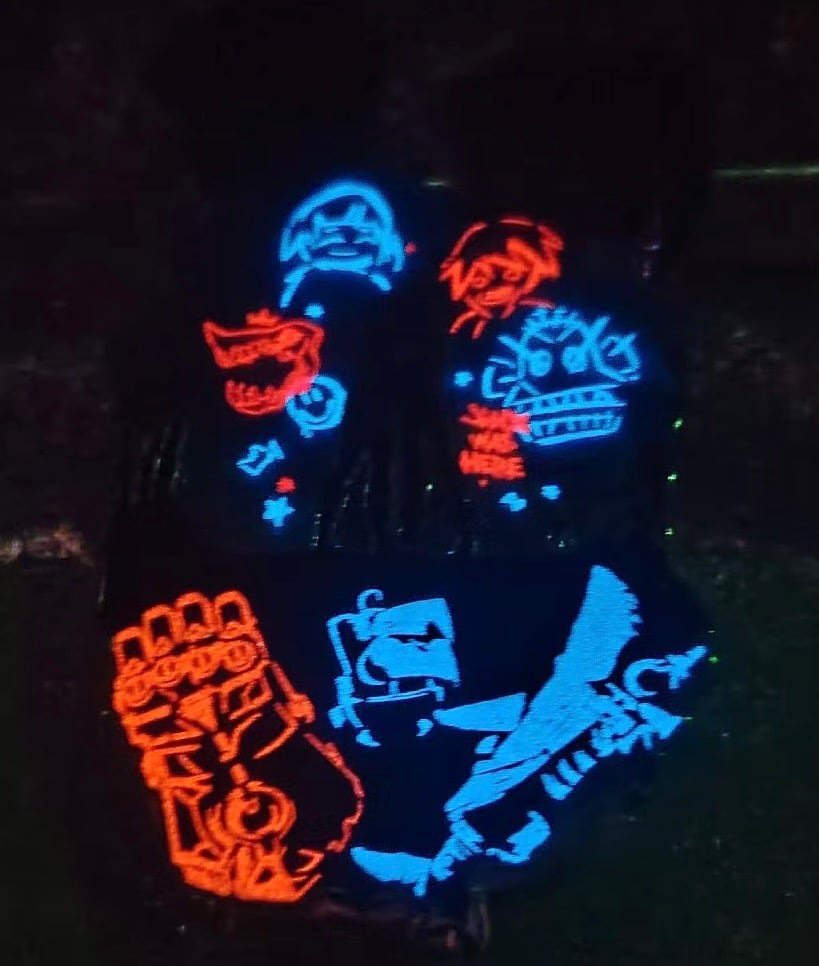 red and blue night glow